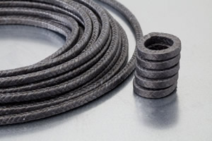 Gaxeta de Carbono suporta temperaturas até 650°C (vapor) e pressão de até 300 bar em trabalhos com válvulas. Fabricada em fios de carbono, apresenta extrema resistência a produtos químicos e agressão.